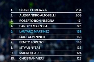 据国米官方统计,劳塔罗为国米攻入158球,排名队史射手榜第5位。